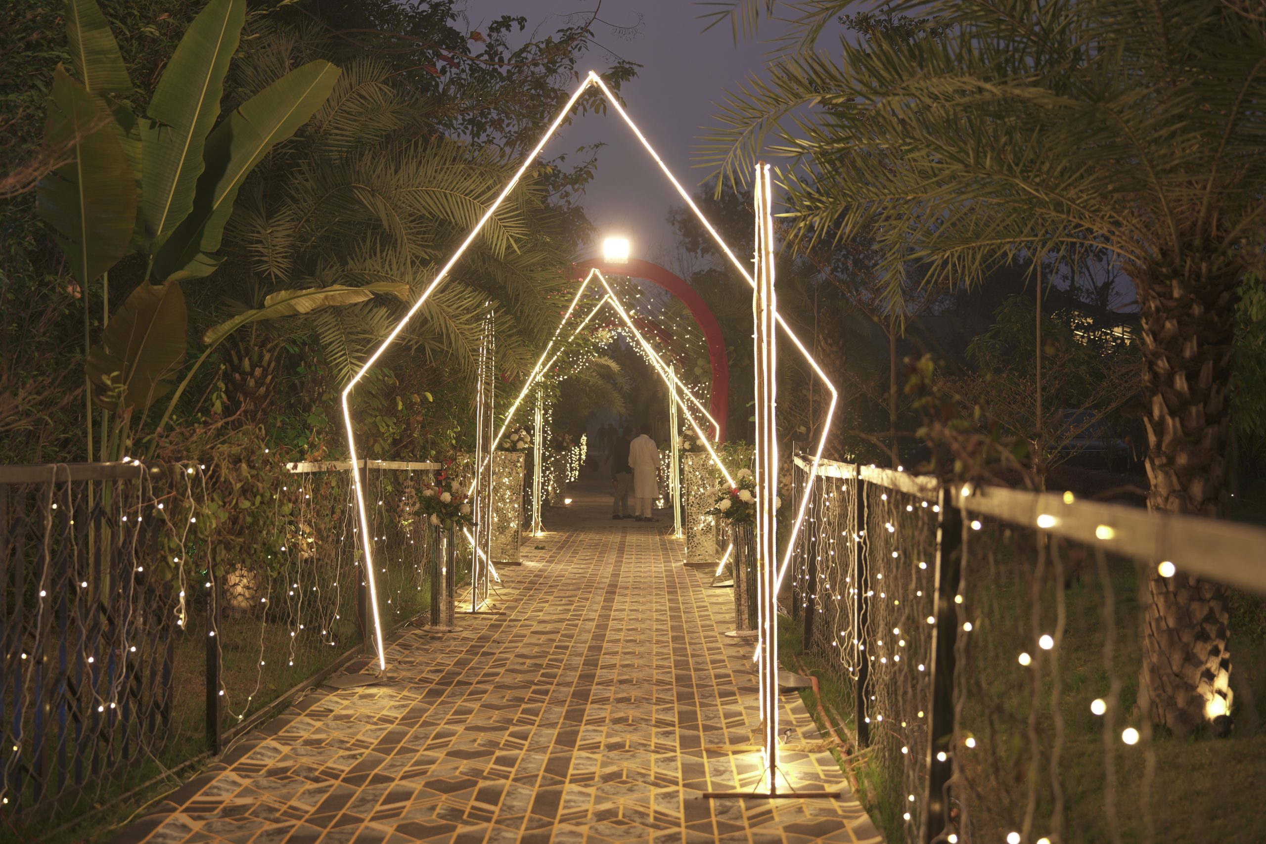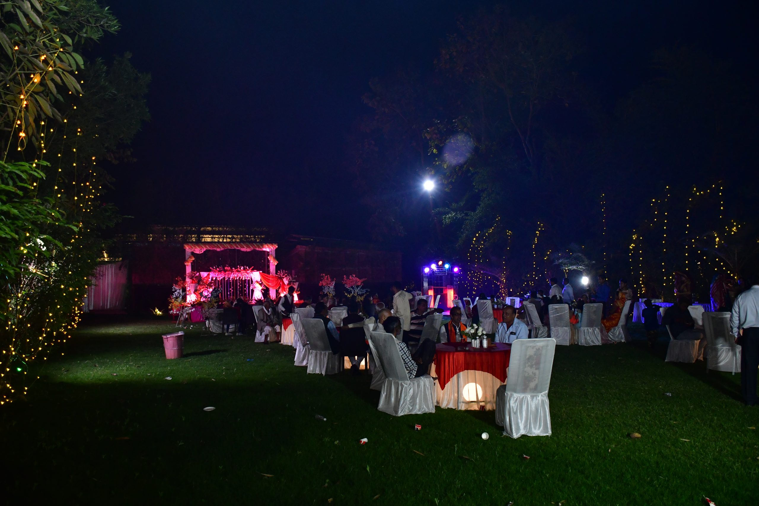 Elegant wedding lawns offer a picturesque setting with lush greenery and beautiful landscaping, perfect for unforgettable ceremonies and receptions.